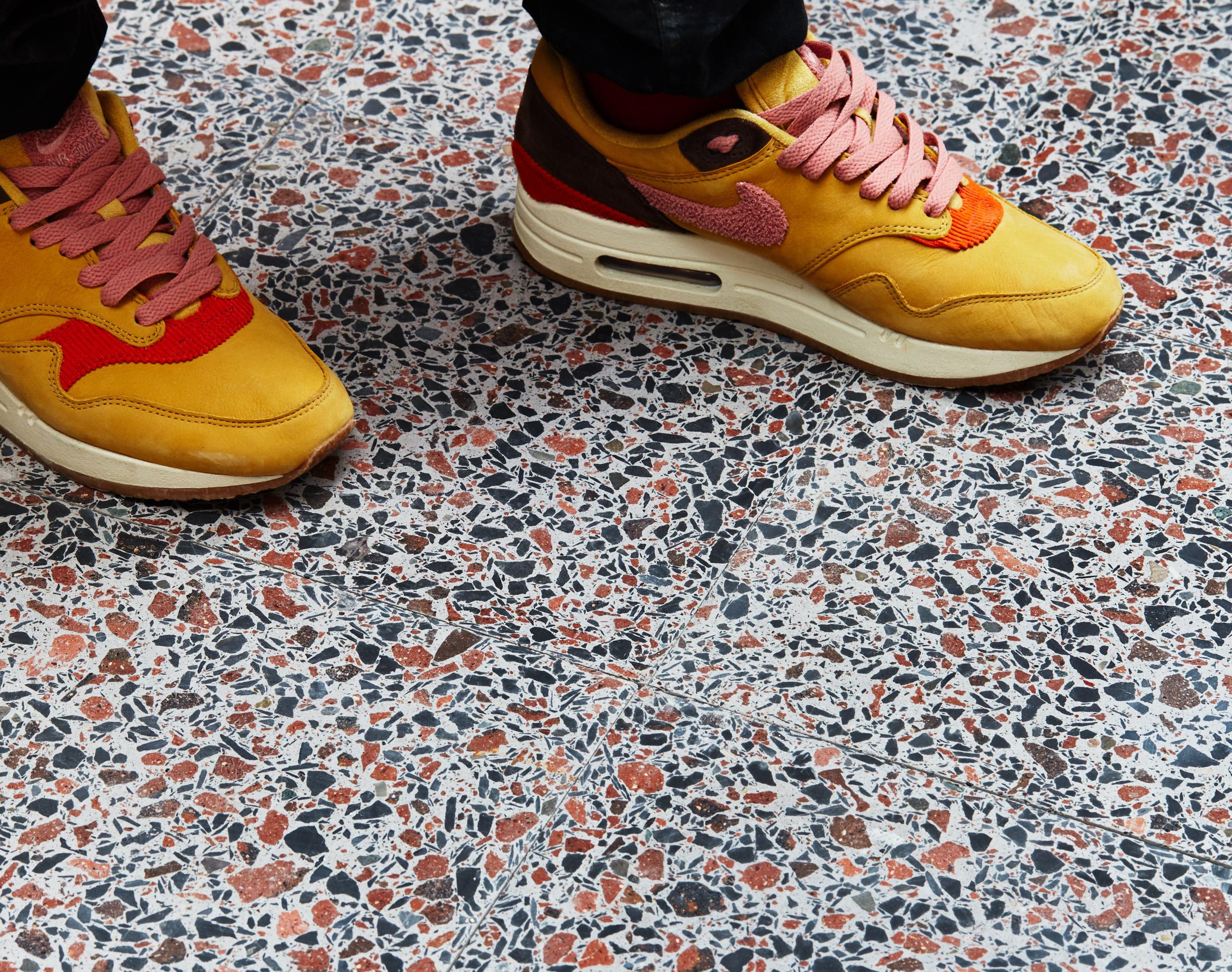 A spin-off from its original Granby Rock recipe, a new recycled Brick + Slate Terrazzo is a floor tile produced using recycled brick, terracotta tile and roofing slate. The tiles were developed in collaboration with a local terrazzo manufacturer in the North West.
