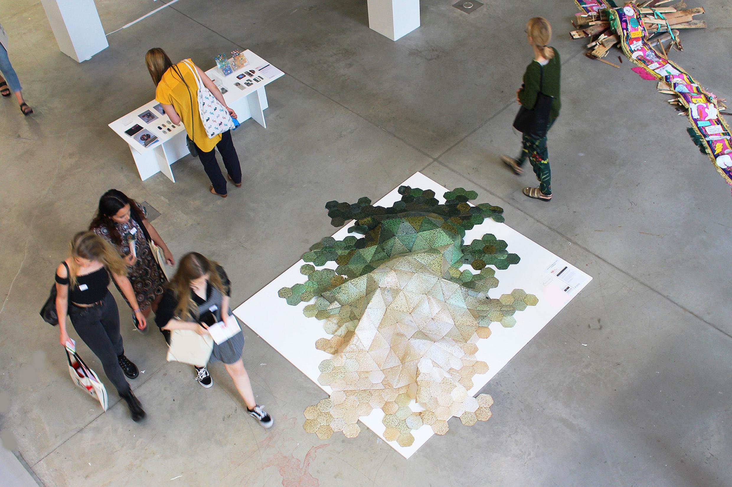 BioMarble can be naturally or synthetically dyed and the material was officially awarded a UK patent (granted in 2020). Laser cut units of BioMarble can be stitched together to form 3D installations for an interior wall or floor surface, or alternatively BioMarble can be layered with other materials to form a hard surface.