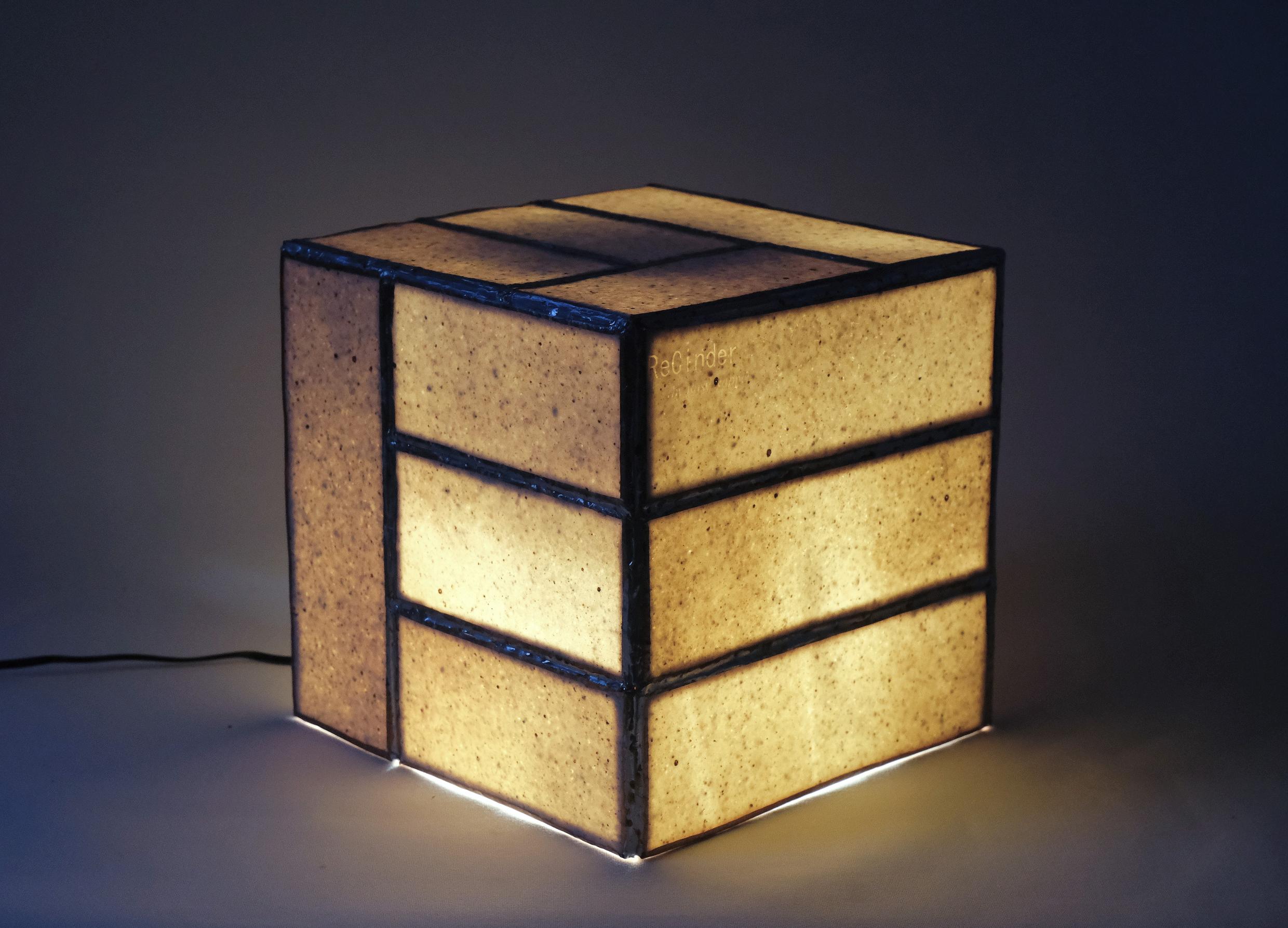 ReCinder is the world’s first entirely recycled ceramic material currently on the market capable of translucency. Our range of lamps are made using ReCinder tiles and locally sourced reclaimed materials.