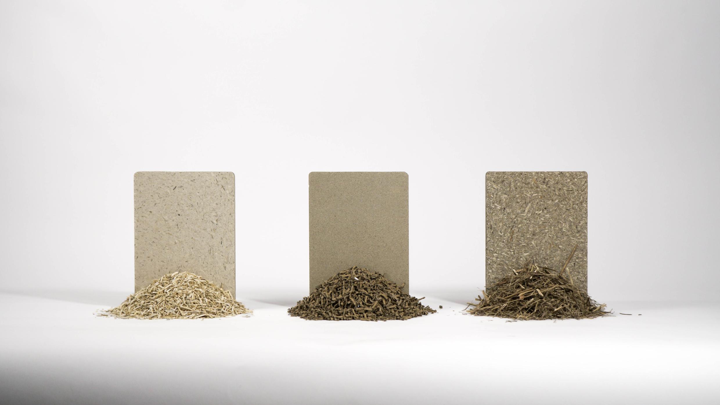 Aggregates such as hemp hurd, sawdust, and sugarcane bagasse are combined to form strong, versatile boards without glues, resins, or petrochemicals.