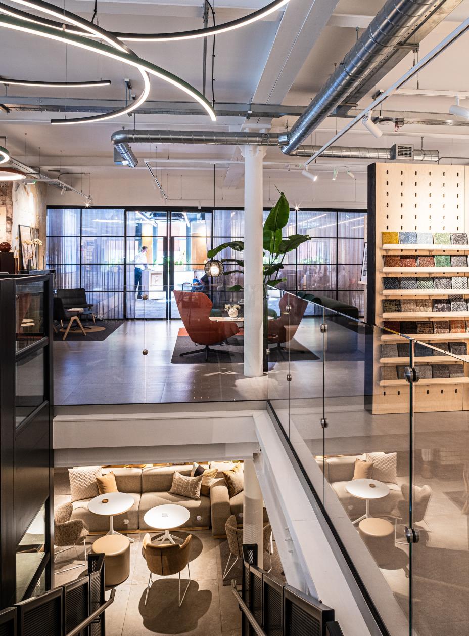 Our 15,000sqft Studio, situated in the Grade II listed Hanover Building, is set across two levels and features a wealth of inspirational exhibits and interactive displays from 50+ leading brands operating in the commercial interiors and built environment sectors. It also includes a bookable 80-seat theatre, a workshop and 7 meeting spaces. As well as space for architecture and design professionals to work.